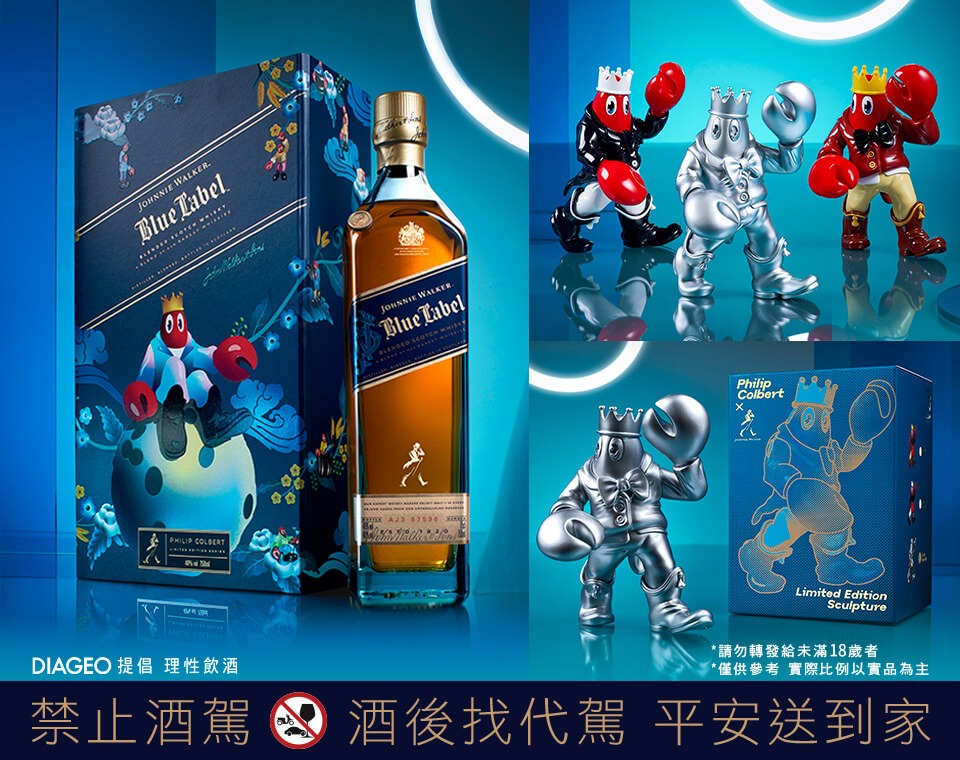 這次更邀請不斷引領時尚話題、翻新潮流風貌的國際普普藝術教父Philip Colbert聯名合作,以他最負盛名的龍蝦人創作,結合XR與藍牌,創造現象級藝術熱潮,引領美學向前跨界,讓威士忌展現嶄新樣貌!