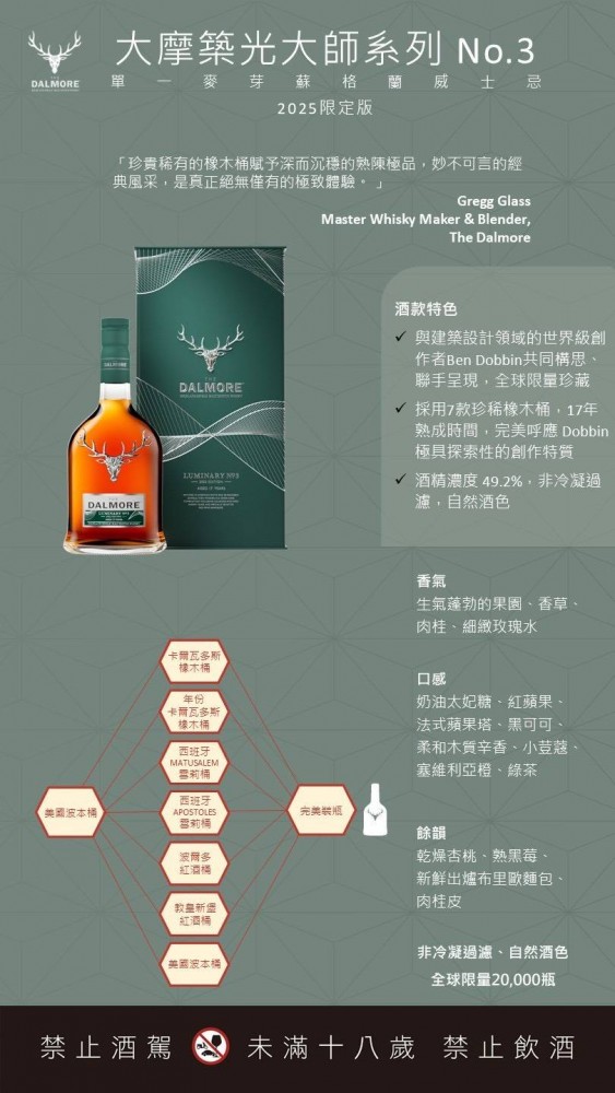 口感:奶油太妃糖、紅蘋果、黑可可、辛香料、小荳蔻、塞維利亞橙、綠茶