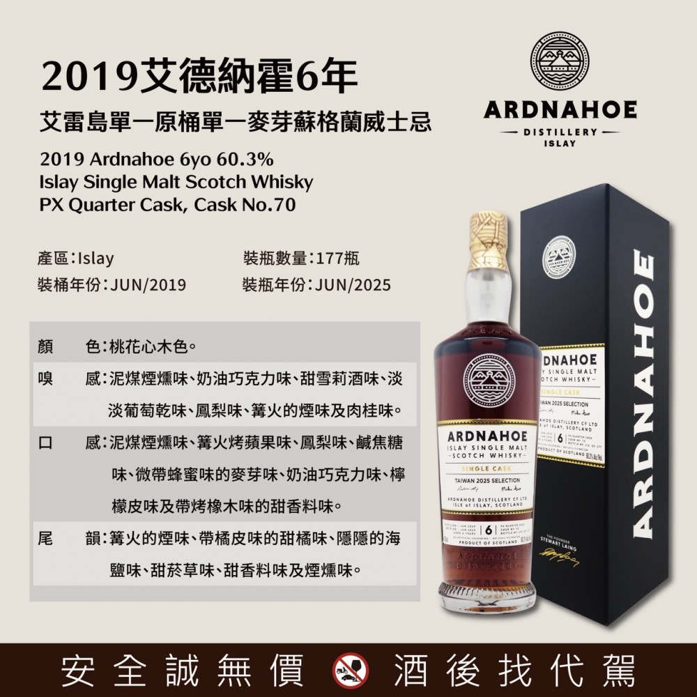 2019 艾德納霍6年單一原桶單一麥芽蘇格蘭威士忌