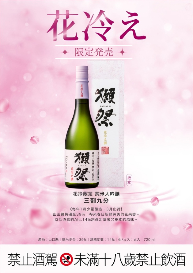 「獺祭」的酒名以數字表現精米步合,「三割九分」表示每粒米只取39%最精華部份去釀造,滴滴甘醇,果香馥郁。